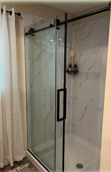 60” Black Roller Dower Door w/Black Corner Shelves Repl. Std. Stainless Roller Door/Nickel Shelves