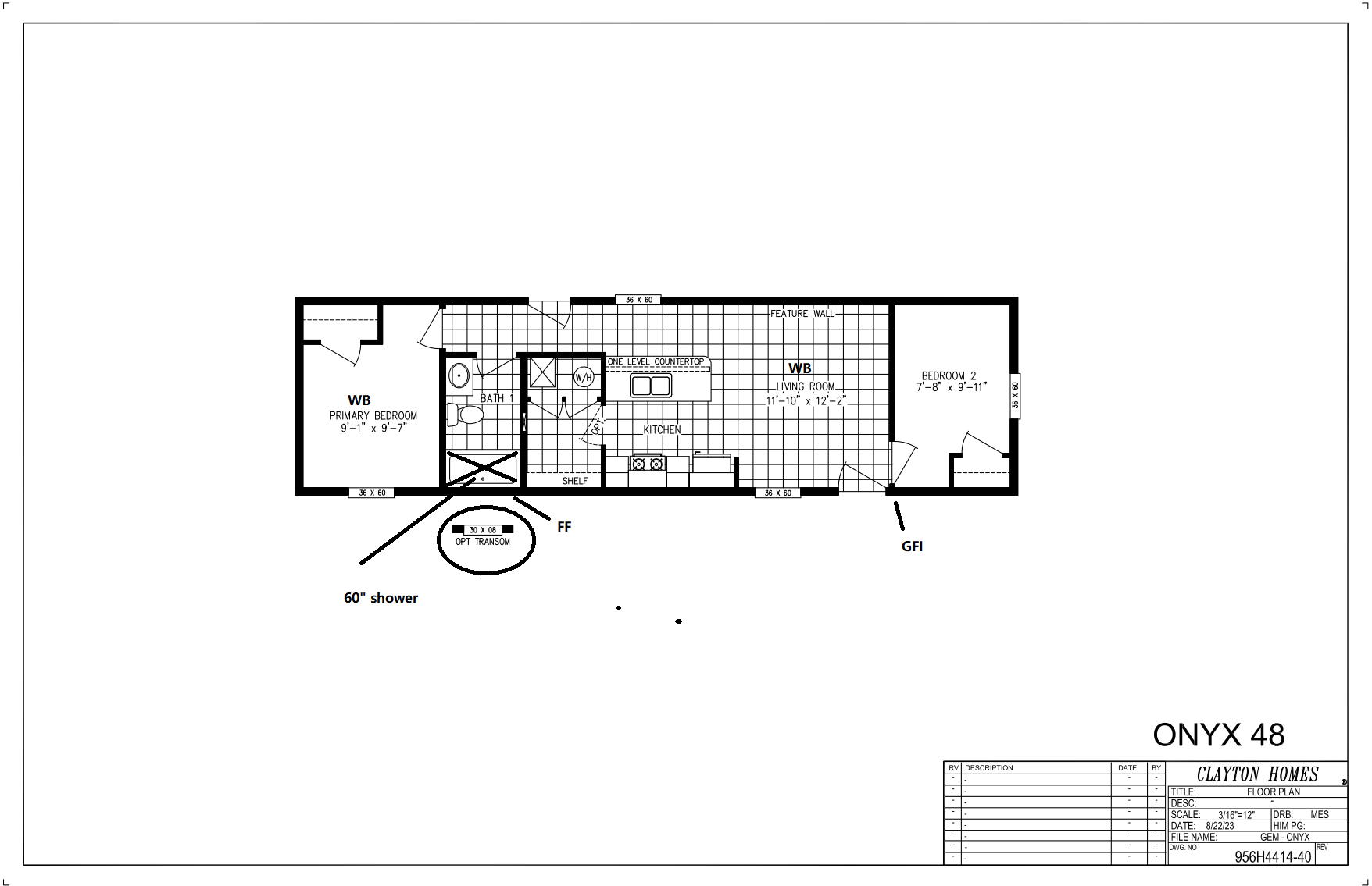 Available as 2 Bedroom, 1 Bath