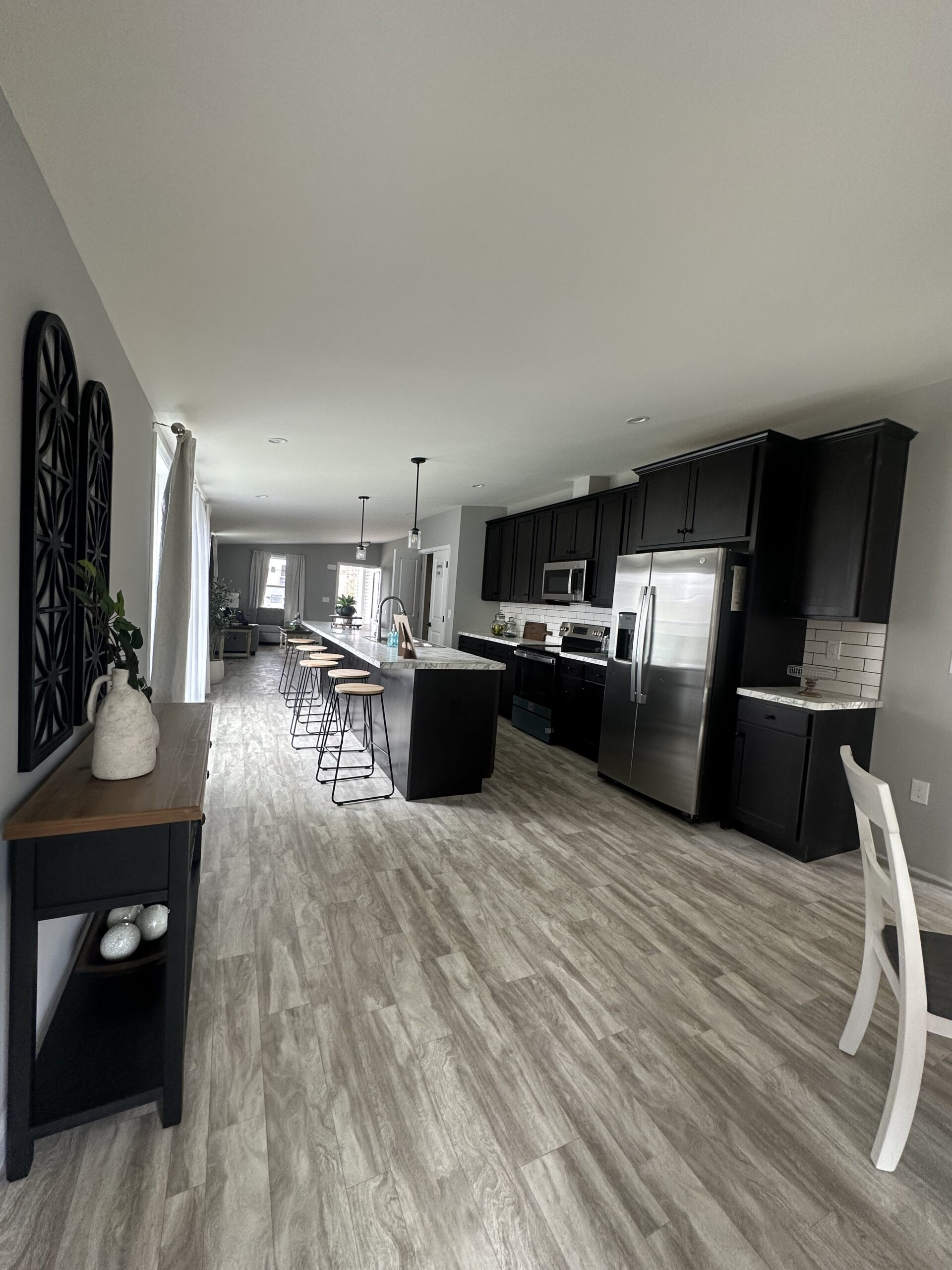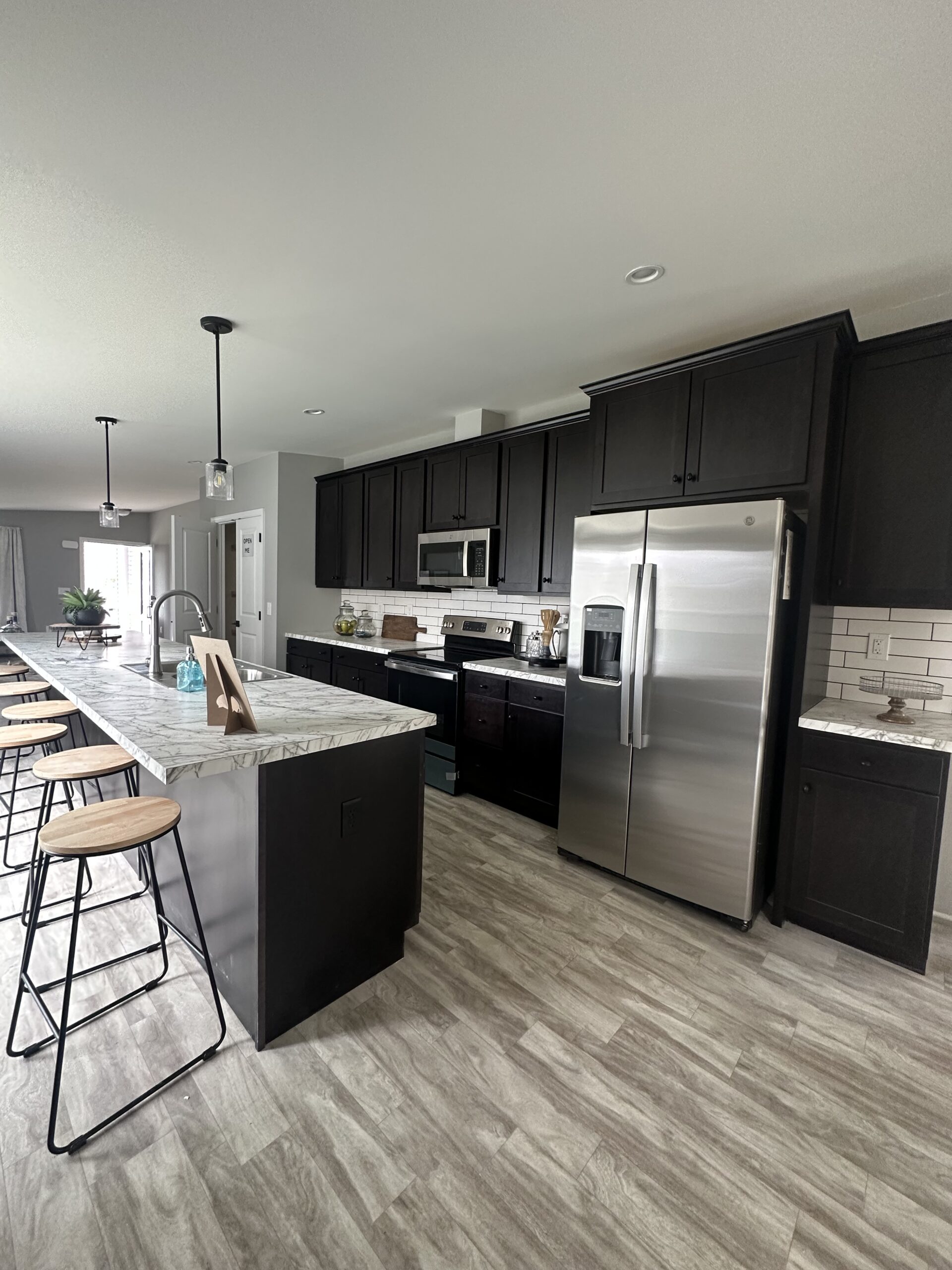 Stainless Steel Appliances: Electric Range with Ceramic Smoothtop, Dishwasher, 25 cu. ft. Side-By-Side Fridge with Ice & Water, Microwave/Rangehood