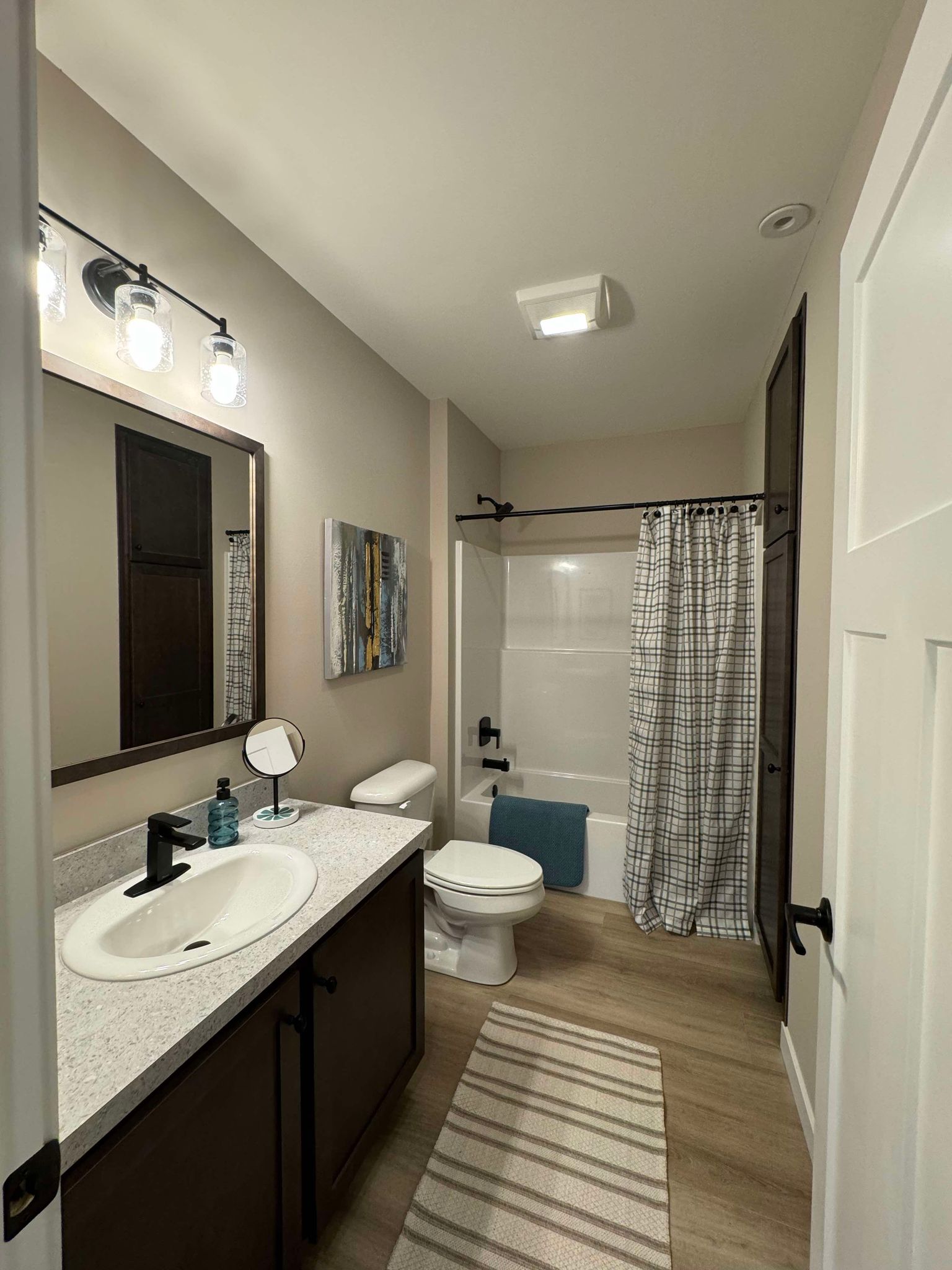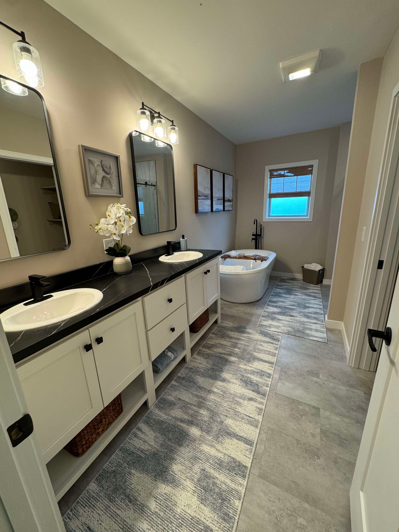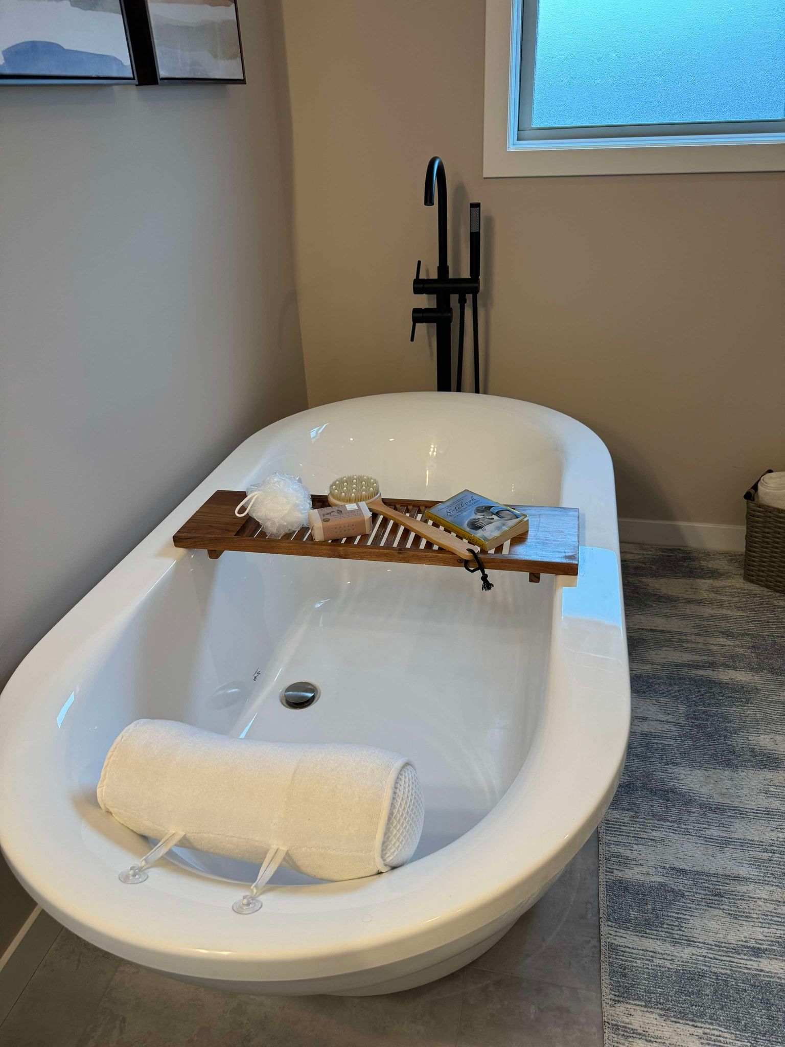 Free-standing oval tub in owner’s bath